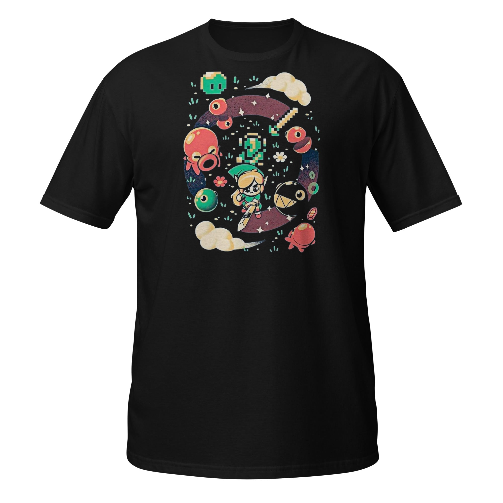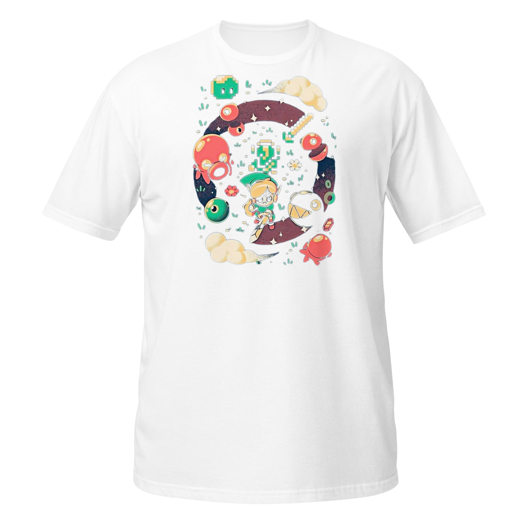 Adentre o mundo mágico de Hyrule com a nossa coleção exclusiva de camisetas unissex, inspirada no icônico jogo "The Legend of Zelda". Prepare-se para uma jornada inesquecível enquanto você explora cada canto deste reino lendário através do estilo e da moda.