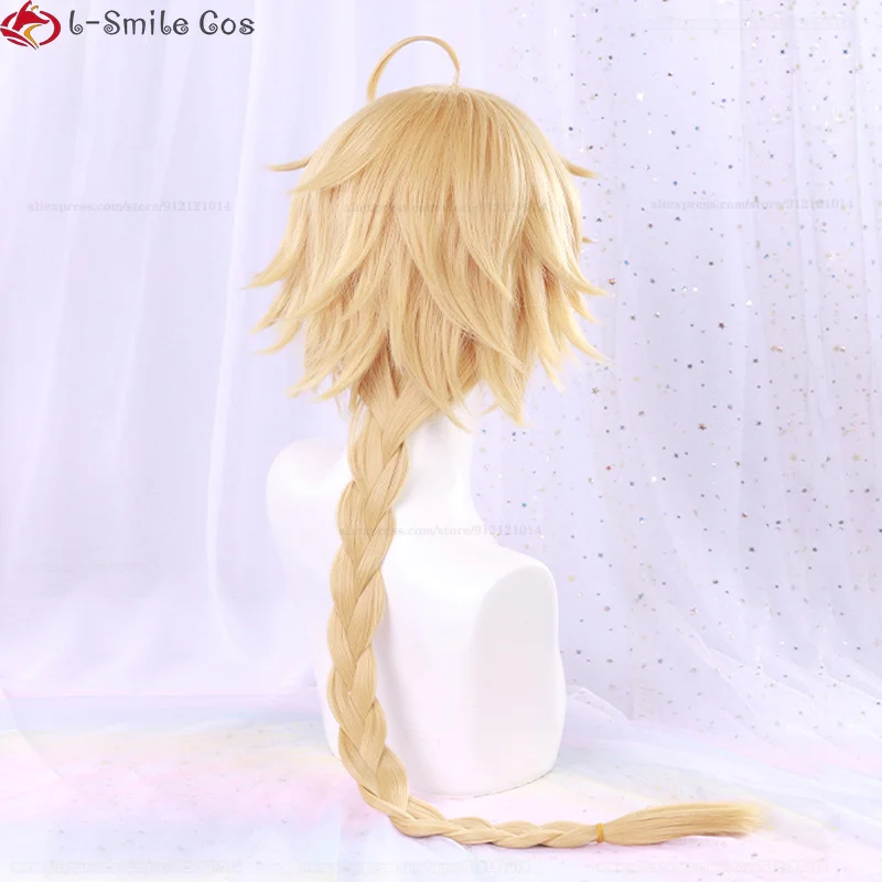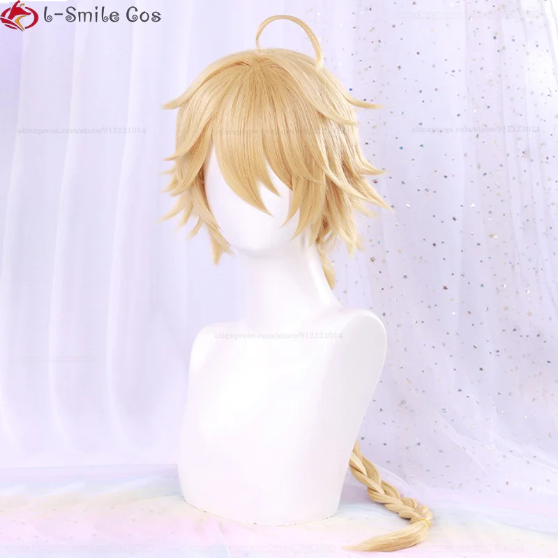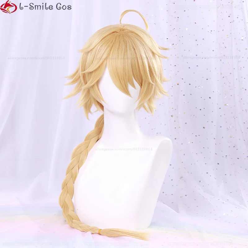 Game Genshin Impact Aether Cosplay Wig 80cm Long Braid With Earrings Heat Resistant Synthetic Hair Party Anime Wigs + Wig Cap